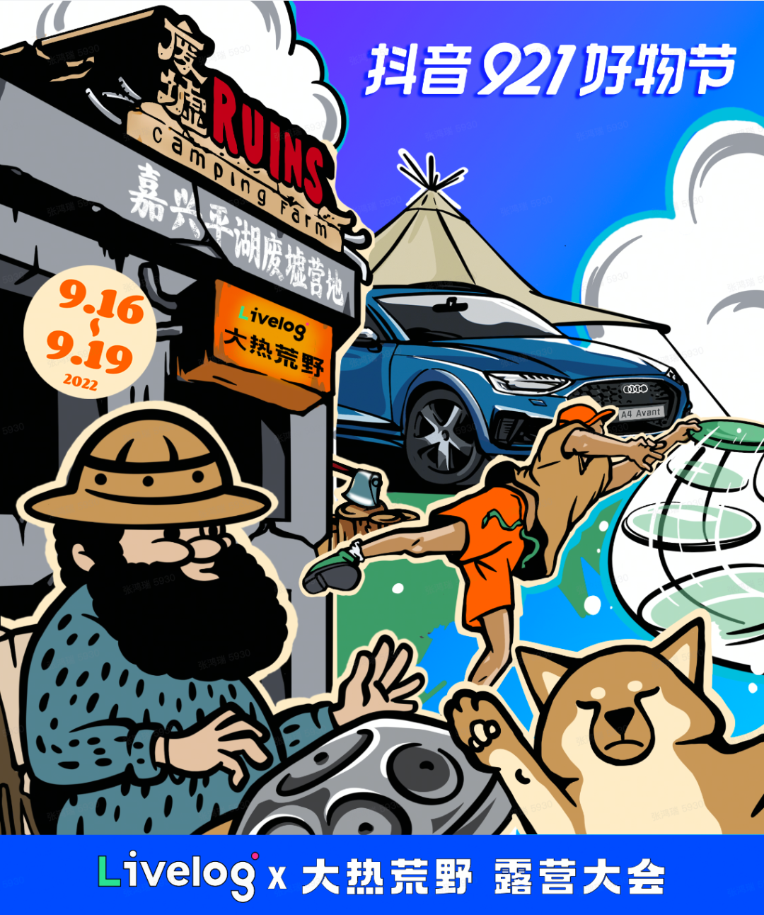 为了让更多的抖音电商品牌商家、服务商抓住这股“野性”风潮,抖音921好物节期间,9月16日-19日服务商livelog潮流好物计划——携手国内头部露营品牌大热荒野,以露营为载体,以生活型态为主题,结合多元当代创作元素,“重装上阵”。