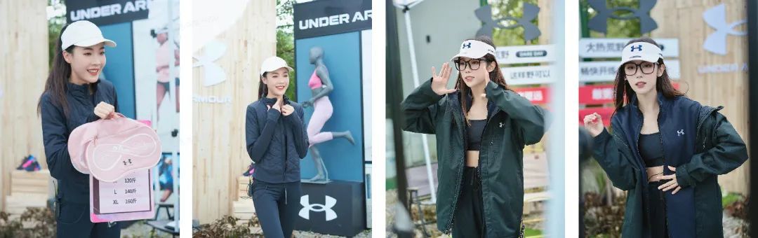 “以安德玛为例,在本次活动中,主打冲锋衣、户外健身服饰等产品;迪卡侬也推出了户外鞋等功能性装备。”相比于室内的局限性,在室外直播,容么么的策略是“拉满产品体验”。“除了主播上身展示,我们融入了更多的现场测试和呈现方式。比如,冲锋衣、户外鞋的防水测试;女子健身外套、运动内衣的伸展性测试等。”