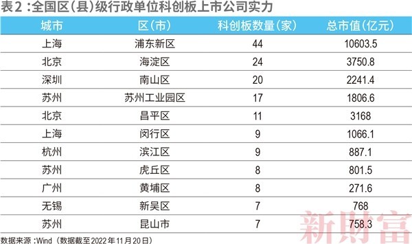 不过,虽然南山区科创板企业在深圳乃至广东省具有领先优势,但数量上少于浦东新区和海淀区。以市值为标准的实力上也略显逊色,20家公司总市值为2241.4亿元,甚至低于仅11家科创板公司的北京昌平区。