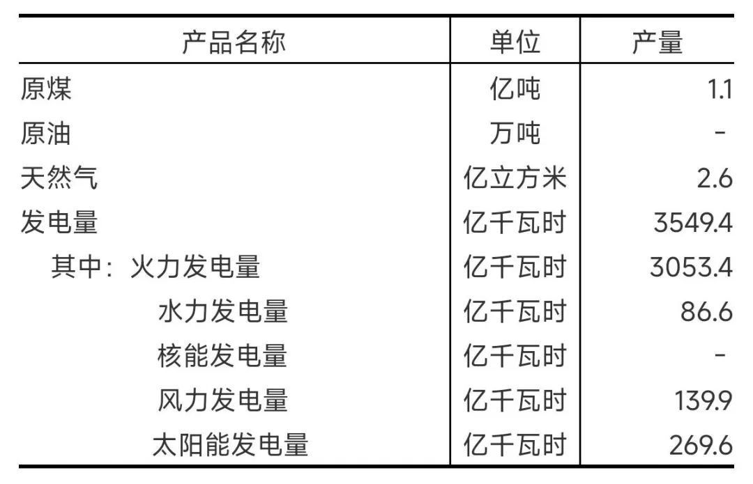 2023年,主要能源产品产量详见表4-5。