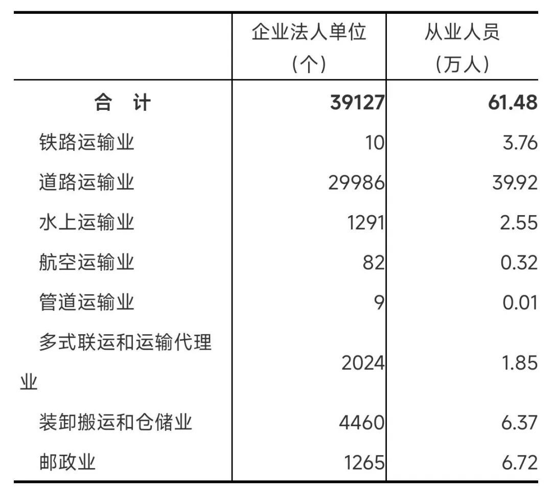 交通运输、仓储和邮政业企业法人单位数和从业人员
