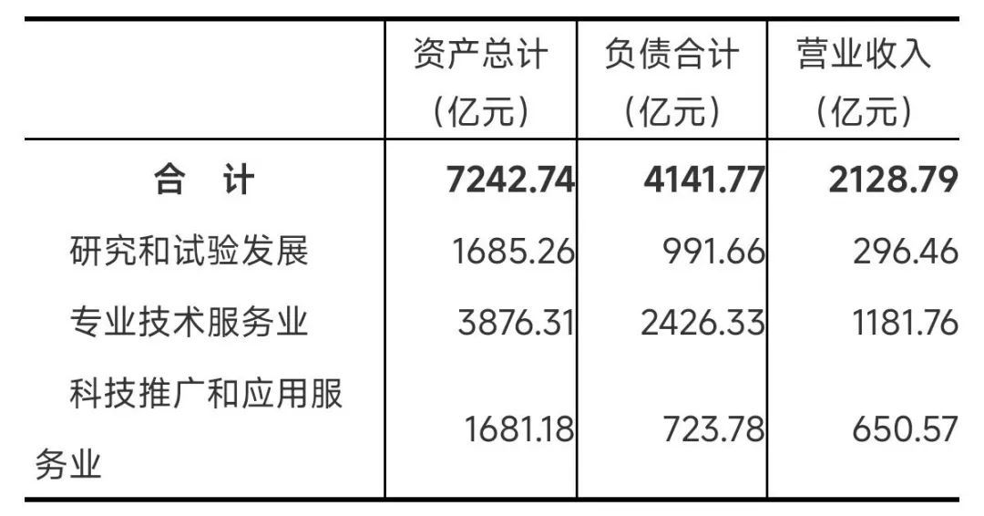 2023年末,科学研究和技术服务业企业法人单位资产总计7242.74亿元,比2018年末增长178.9%;负债合计4141.77亿元,比2018年末增长250.4%。