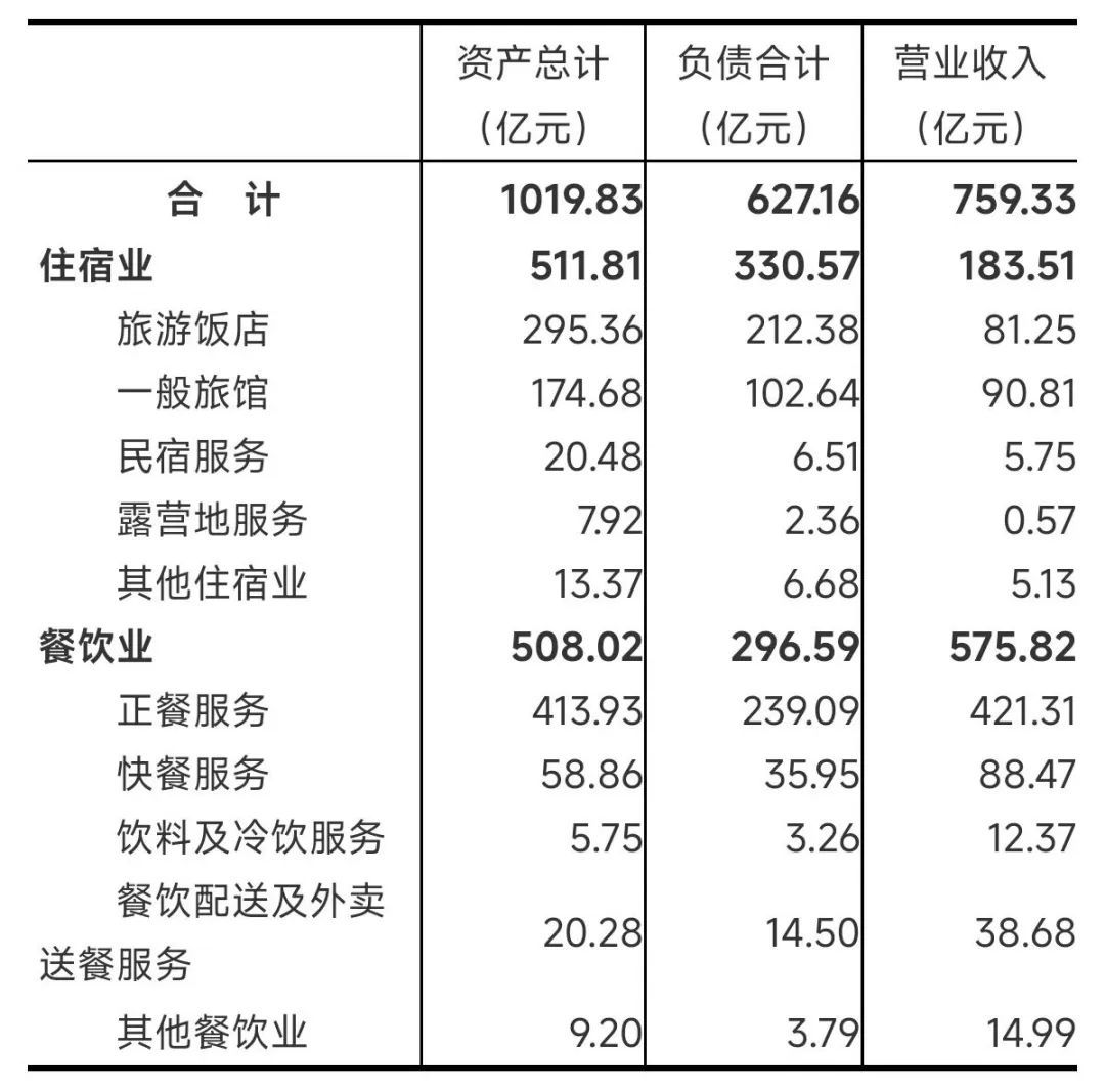 2023年末,住宿和餐饮业企业法人单位资产总计1019.83亿元,比2018年末增长24.5%;负债合计627.16亿元,比2018年末增长31.9%。