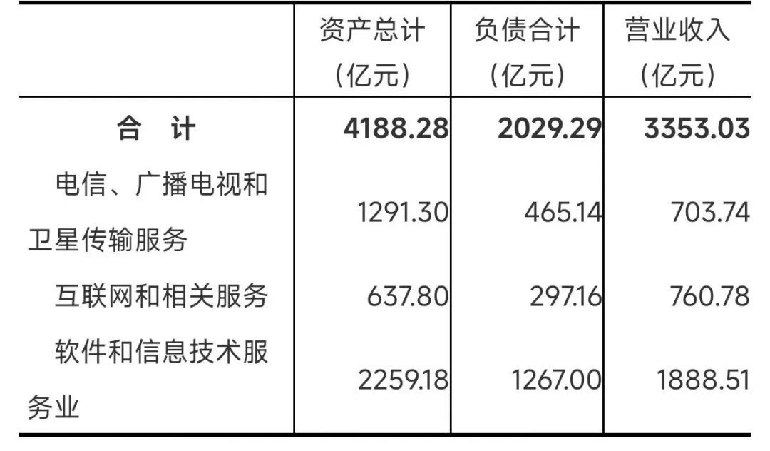 2023年末,信息传输、软件和信息技术服务业企业法人单位资产总计4188.28亿元,比2018年末增长114.1%;负债合计2029.29亿元,比2018年末增长193.5%。